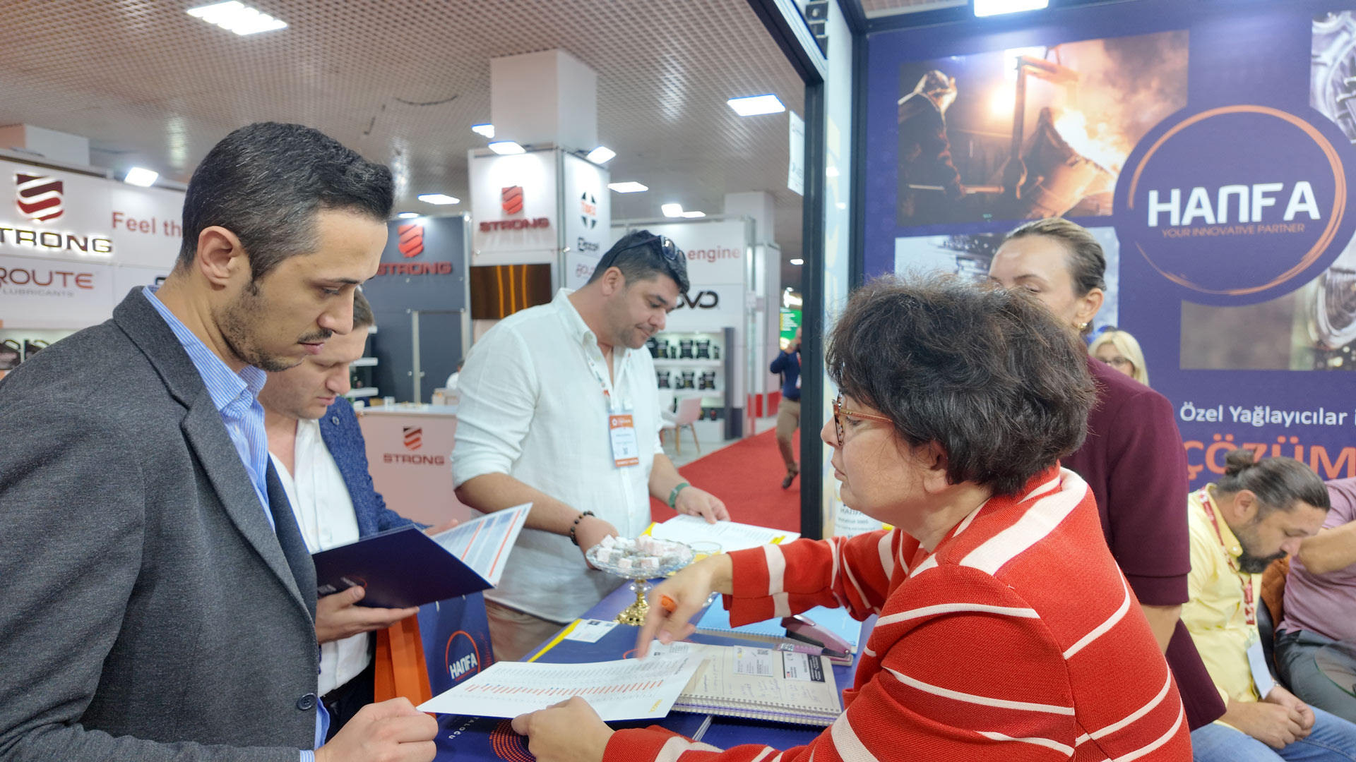 Hanfa Kimya standı, madeni yağ üreticileri, distribütörler, endüstriyel işletmeler ve global tedarikçiler tarafından yoğun şekilde ziyaret edildi. Firma ekibi, madeni yağ katkı maddeleri, endüstriyel yağ çözümleri ve yenilikçi kimyasal formülasyonlar hakkında detaylı bilgilendirme yaparak sektörün ihtiyaçlarına yönelik uzmanlığını ortaya koydu.
